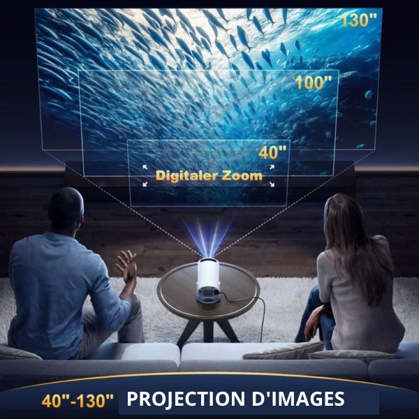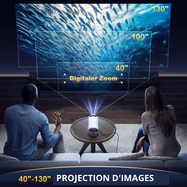 Profitez d’une image géante allant de 40 à 130 pouces, idéale pour créer une vraie ambiance cinéma à la maison ou en extérieur. Une immersion totale, même dans les petits espaces.